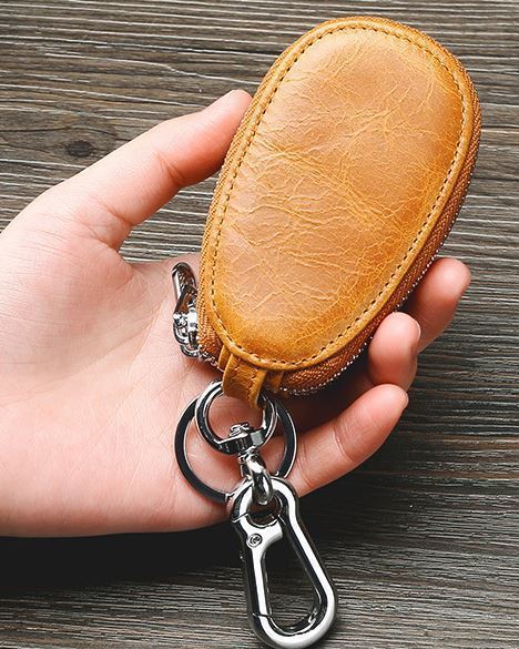 - NEW 送料無料 ダブルファスナー キーケース スマートキーケース レザー 本革 作りで本格派 キャメル色