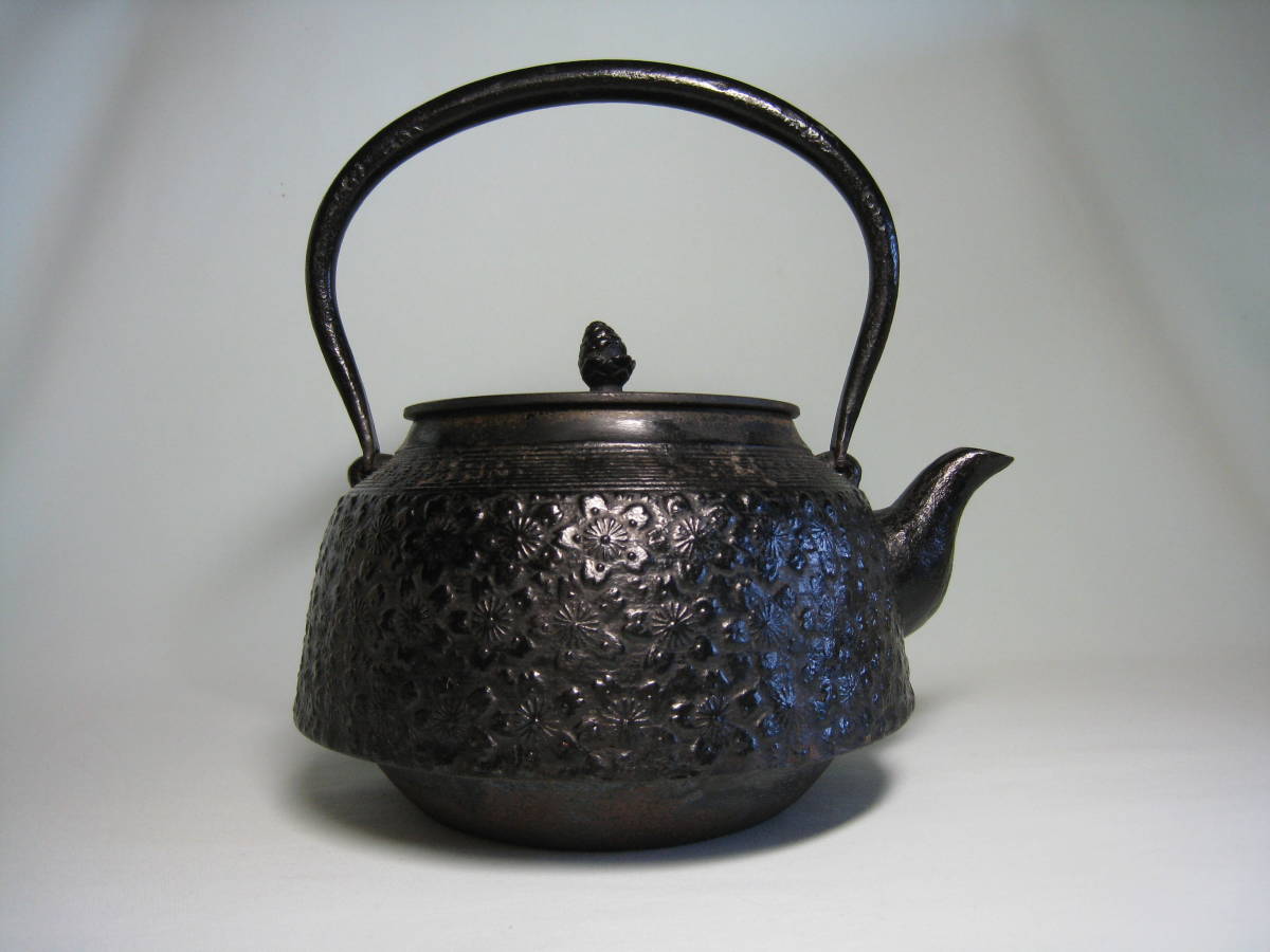 - 南部鉄瓶 桜文鉄瓶 宝寿堂 持ち手までの高さ約22㎝
