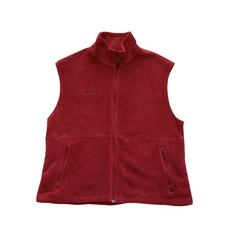 - 【00s】Columbia コロンビア フリースベスト メンズ XL 赤/レッド 無地 アウトドア ワンポイント 刺繍 キャンプ 登山 防寒 古着 ビンテージ