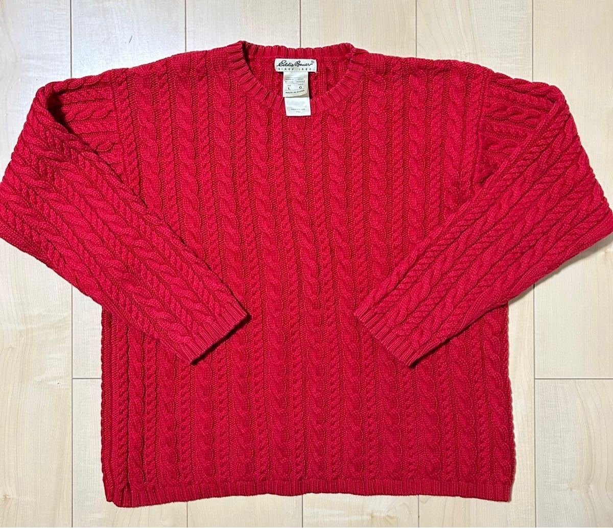 - 美品 Eddie Bauer エディーバウアー 編み込み ケーブル編み ニット セーター レッド レディース Lサイズ