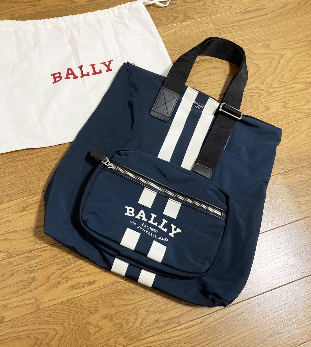 - 未使用☆[BALLY] 22AW 定価85,800 FALLIE STL 507 ロゴライン パッカブル ナイロントートバッグ ネイビー バリー