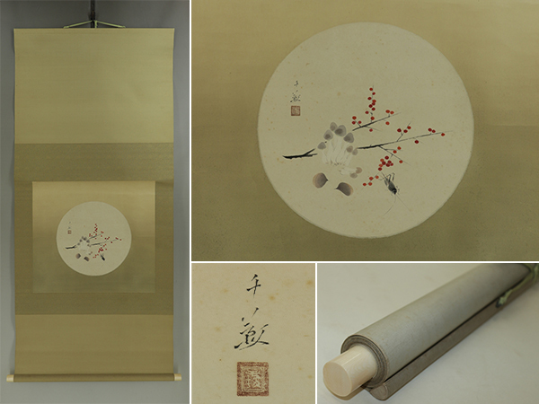 - 【模写】郷倉千靱【秋果鳴虫】◆紙本◆共箱◆二重箱◆掛軸 t10075