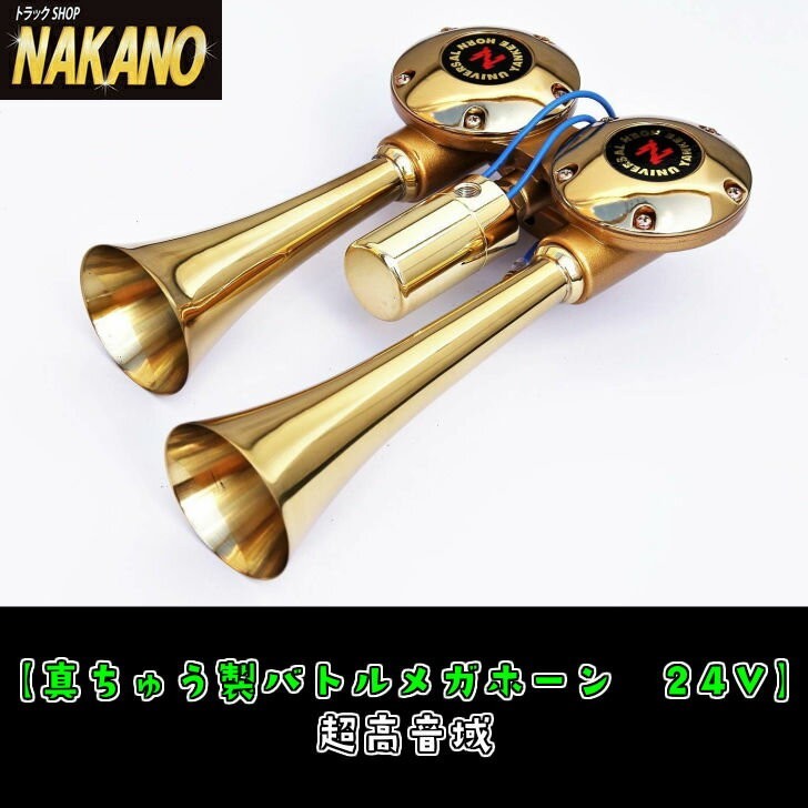 - バトルメガヤンキーホーン 真鍮 24V BC428 日建製 エアーホーン 超高音 危険回避音!
