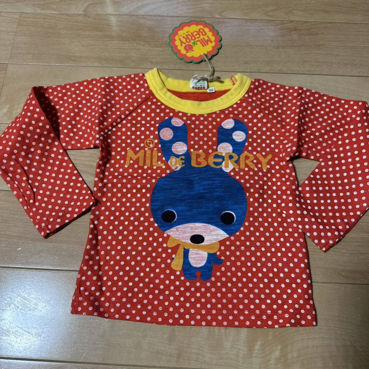 - 新品ミルデベリー ドット柄両プリ長袖TシャツロンT100 定価3045円 レトロガーリー 女の子 キッズ 子供服 グラグラJAM リオ横山