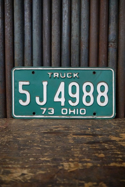 - ビンテージOHIOナンバープレート[gosn-61]検アメリカ/USA/ライセンスプレートTRUCK/オハイオ州/1973年/MOTORガレージJUNK雑貨