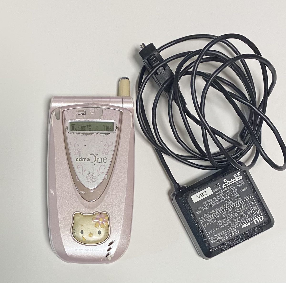 > ★ハローキティ★サンリオ★ガラケー★ピンク★折り畳み携帯★携帯電話★充電器★レトロ★コレクション★au★cdmaOne★C401SA★Hello kitty