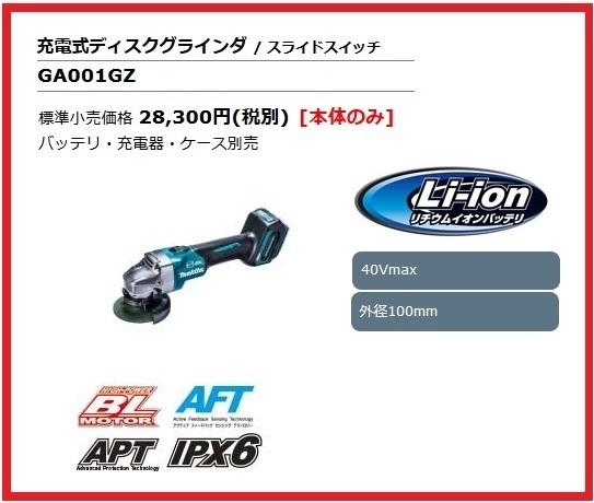 - マキタ 100mm 40Vmax 充電式ディスクグラインダ GA001GZ (本体のみ) ■安心のマキタ純正/新品/未使用■