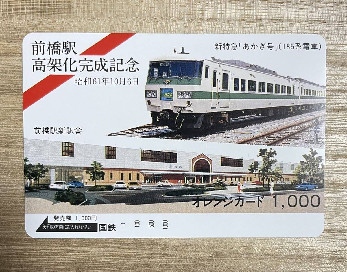 - 未使用 コレクション品 前橋駅 高架化 昭和61年10月6日 新特急あかぎ号 185系電車 日本国有鉄道 オレンジカード 1,000円 穴なし 国鉄