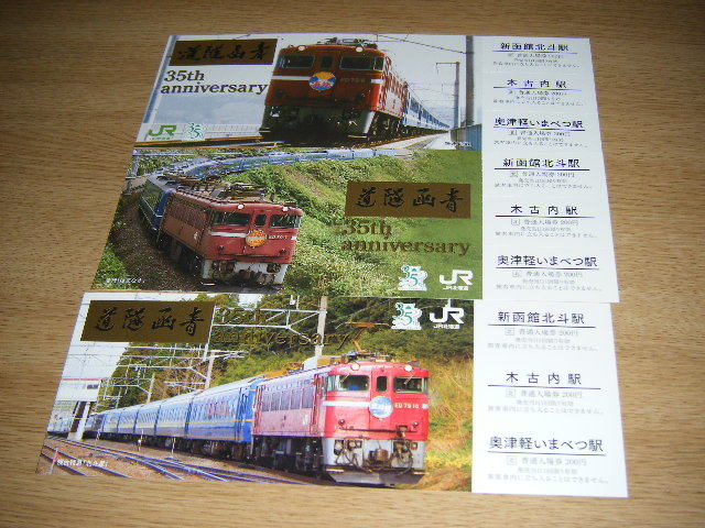 - 【JR北海道】青函トンネル開業35周年 記念入場券3駅セット【奥津軽いまべつ・木古内・新函館北斗駅発売分】