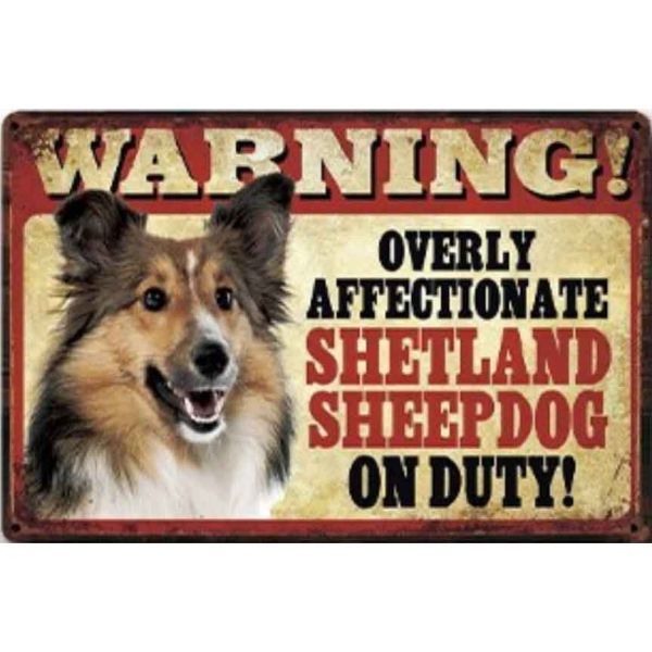 > A806 メタル サイン ブリキ 看板 金属 プレート 店 注意 危険 防犯 動物 ペット 猛 犬 シェットランド シープドッグ【3182
