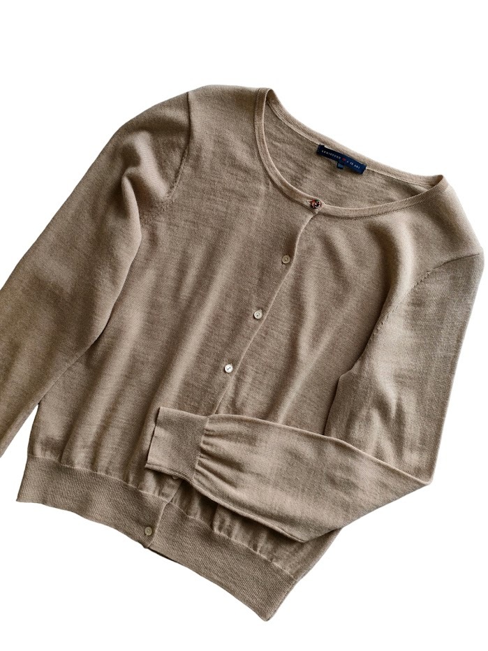 - ●KUMIKYOKU組曲/Uネックカーディガン/サイズ6/20周年タグ/オンワード樫山/ウール/ベージュ●