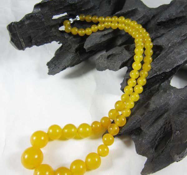 - [EasternStar] 海外発送 天然石 ネックレス 玉サイズ6-14mm 長さ約42㎝ パワーストーン Power stone イエローアゲート