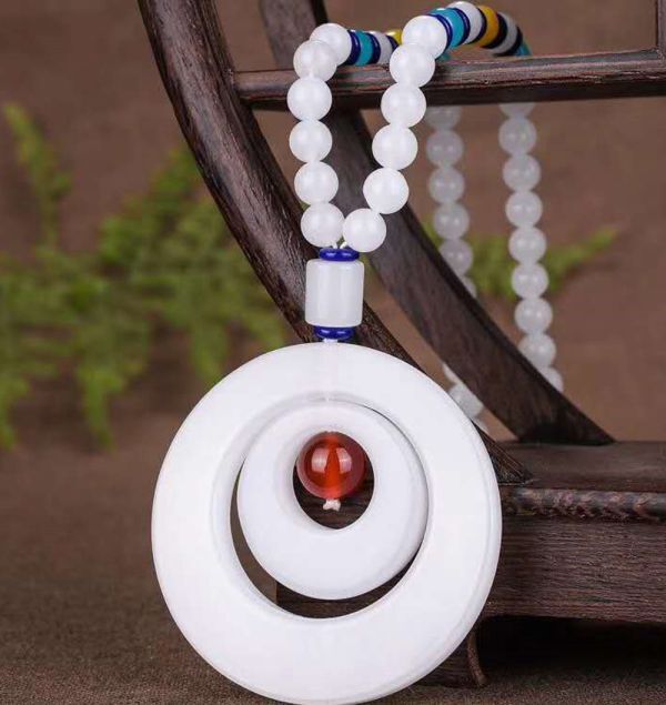 - 海外発送 天然石 新疆 金線玉 ホータン玉 白玉 ネックレス タイプ2 長さ約70㎝ パワーストーン Power stone