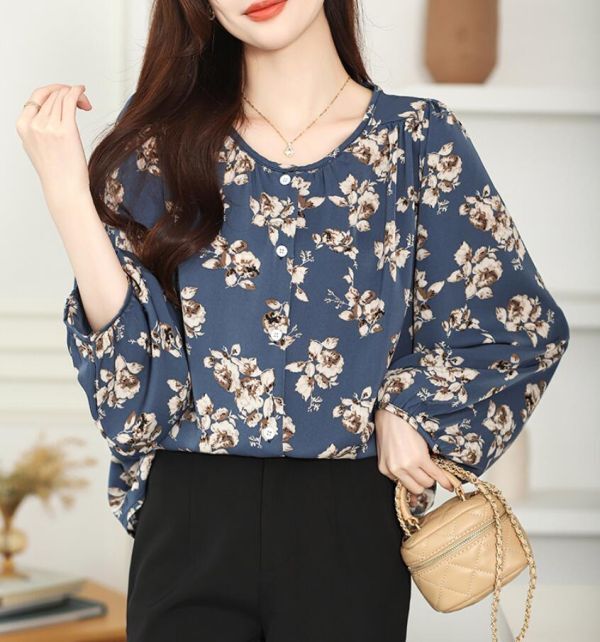 > 春新品 / ブラウス レディース 花柄 シャツ 長袖 ブラウスシャツ シフォン 大人 オフィス きれいめ トップス 長袖シャツ /11
