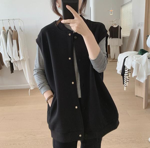 - 春新品 /ベスト カジュアルベスト レディーストップス 重ね着 レイヤード おしゃれ オーバーサイズ ゆったり ノースリーブ/ブラック