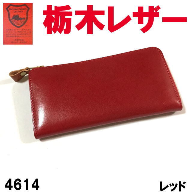 - レッド 栃木レザー ルビー L字 長財布 4614 日本製 本革 メンズ レディース