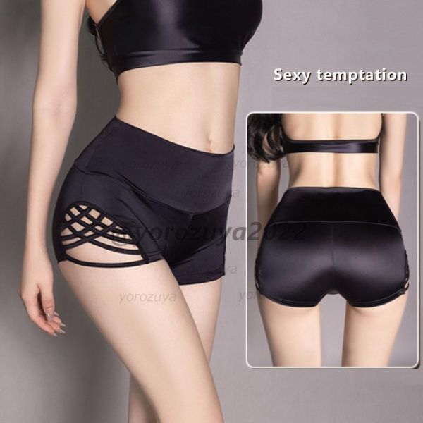 > 113-241-15 艶々 光沢 ショートパンツ クロス パンツ【ブラック,Fサイズ】レディース セクシー ショーツ ホットパンツ ランジェリー.2