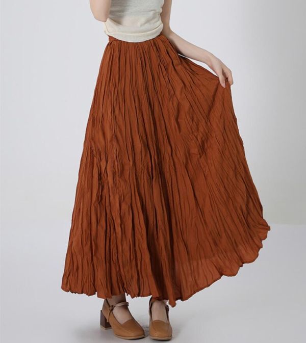 - 新品 / スカート フレア 膝丈 ロング丈 膝下丈 フレアスカート プリーツスカート マキシ aライン ミディ丈 ミモレ丈 ゆったり / オレンジ