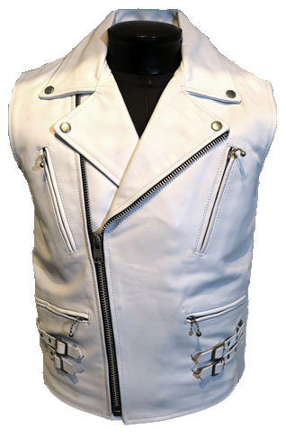 - Sサイズ 本革 ライダースベスト UKライダース レザーベスト 3975 WHITE 白 ホワイト 牛革ジャケット 北斗の拳 ロンジャン カウレザー