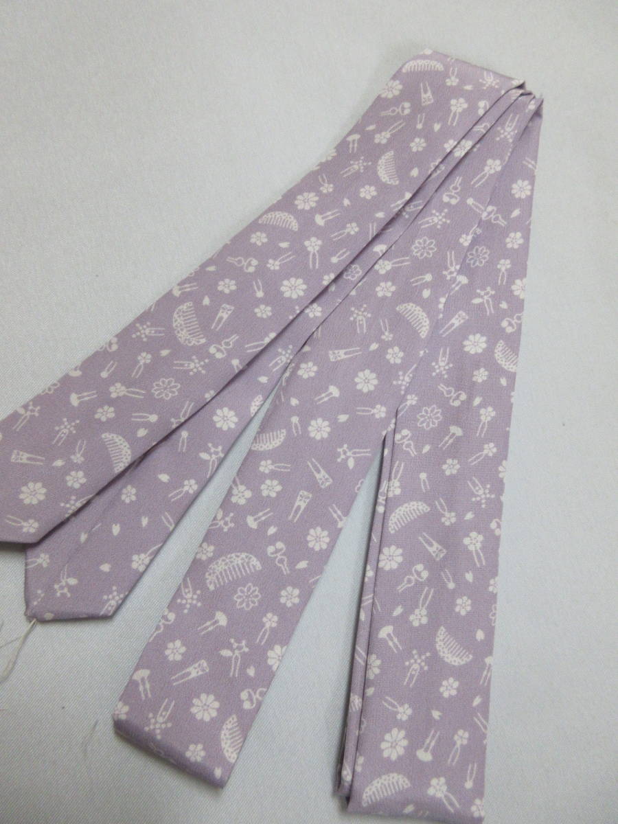 - ○○創作腰紐 正絹 手作り 腰紐 襷(たすき) 髪飾り柄 薄藤色 長さ 約2.05m 巾 約4.3㎝ ド0001