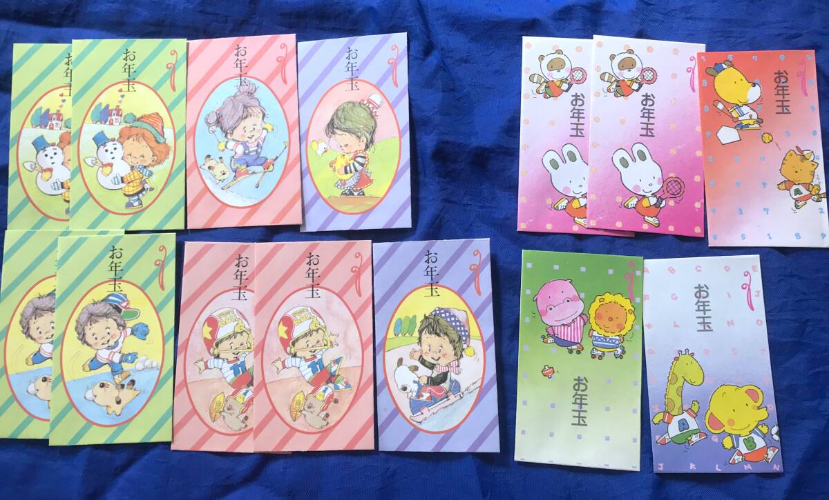 - 【レトロポップな絵柄】1970~80年代 昭和レトロ かわいい お年玉袋 ぽち袋 14枚セット JA 農協加入特典 非売品 でりんす