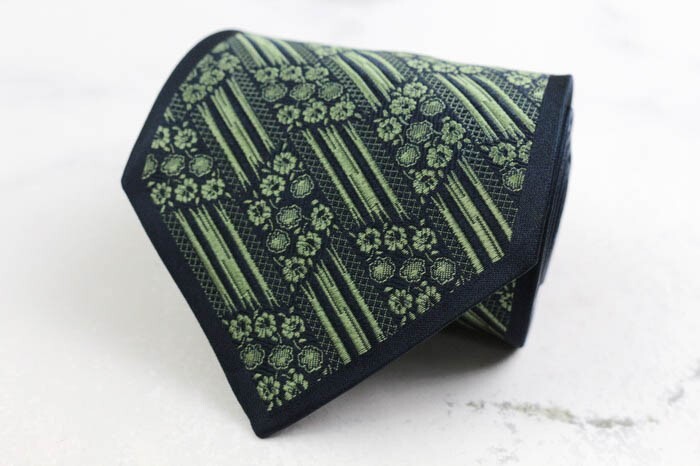 - ミラショーン シルク 小紋柄 花柄 イタリア製 ブランド ネクタイ メンズ ネイビー 良品 mila schon