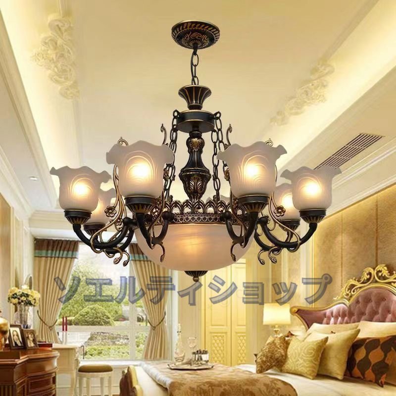 - 人気新品!希少 古美色 ハンドペイントシーリングシャンデリア 6灯 品質保証