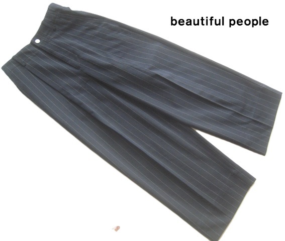 > 新品!!GU AND BEAUTIFUL PEOPLE ビューティフルピープル*1プリーツ ストライプ柄 タックワイドパンツ XS 濃紺 ネイビー