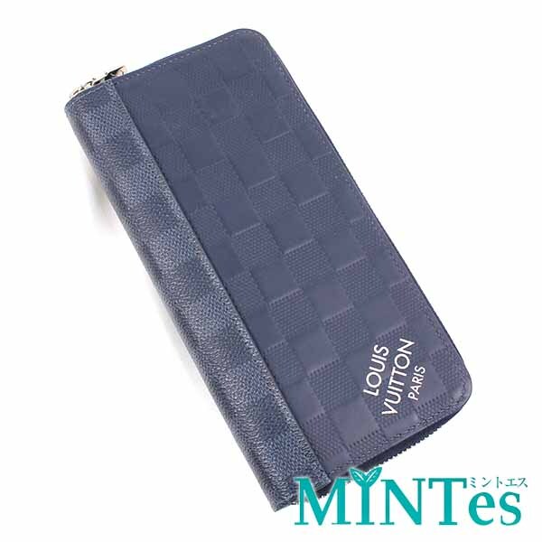 - Louis Vuitton ルイヴィトン N60503 ジッピーウォレット ヴェルティカル ラウンドファスナー長財布 ダミエ・アンフィニ ネイビー レザー