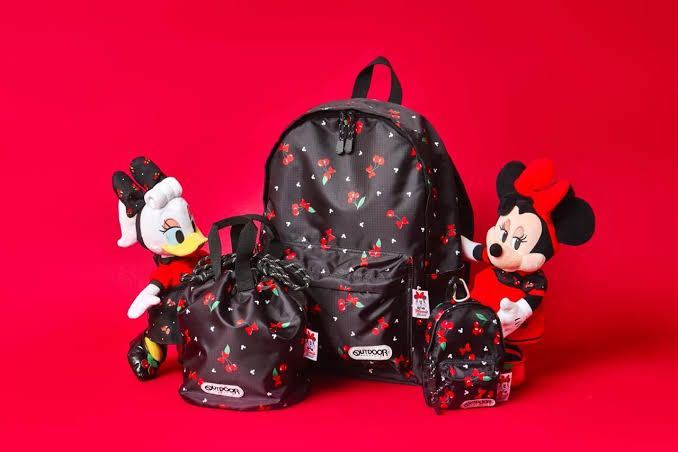 - 新品ディズニー購入アウトドアコラボ さくらんぼ柄ミニー リュック型ポーチ 【人気レア】OUTDOOR ×Disney チェリー柄