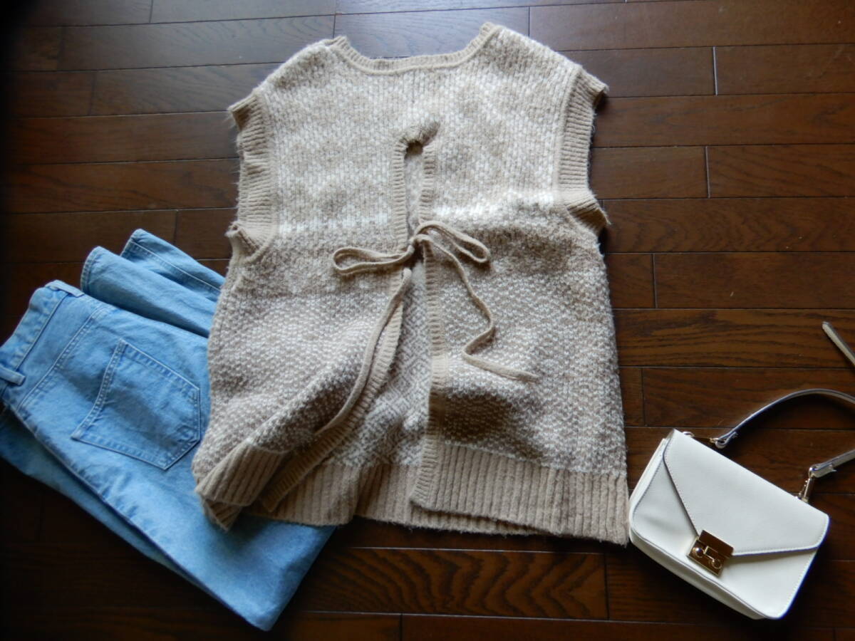 - 【niko and…/ニコアンド】F 後ろ姿も大人可愛いゆったり柄ニットベスト ベージュ系