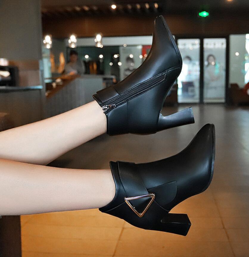 - 新入荷 / レディース ショートブーツ チャンキーヒール ブーティ 太ヒール ショートブーツ 歩きやすい ポインテッドトゥ / ブラック