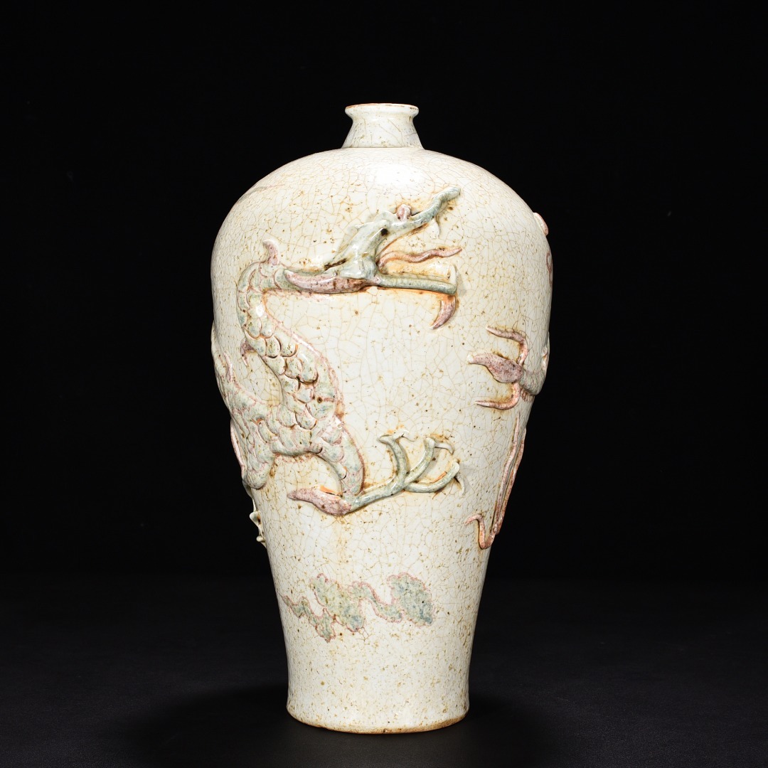 - 元釉里紅 貼塑龍紋梅瓶 唐物 陶磁器 中国美術 工芸品 HB873