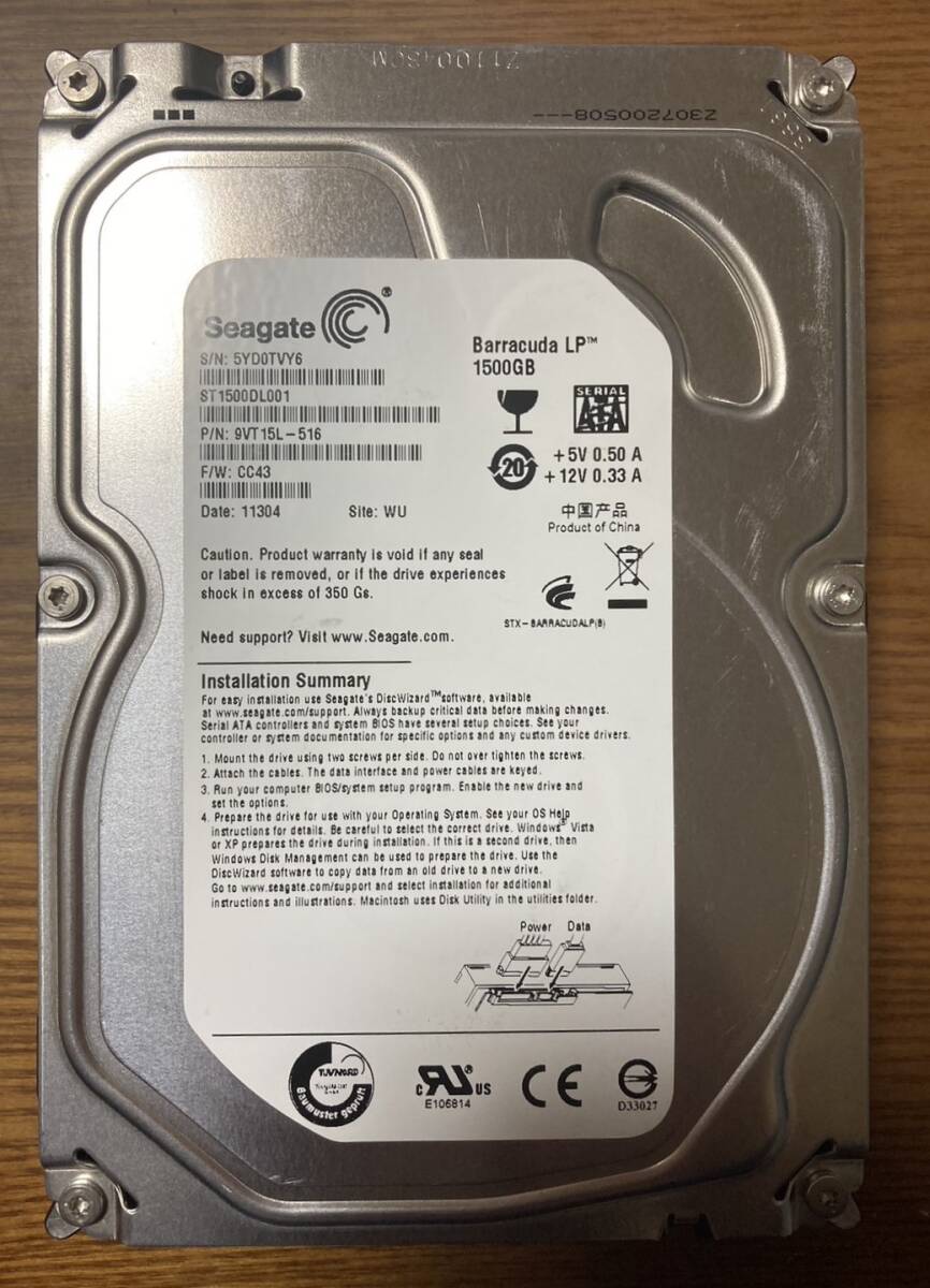 - 【状態◎】Seagate 1.5TB 3.5HDD ST1500DL001
