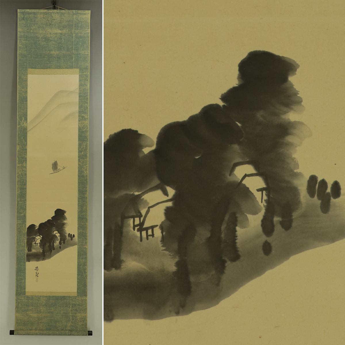 - 【模写】大智勝観【雨中山水】◆紙本◆合箱◆掛軸 t06108