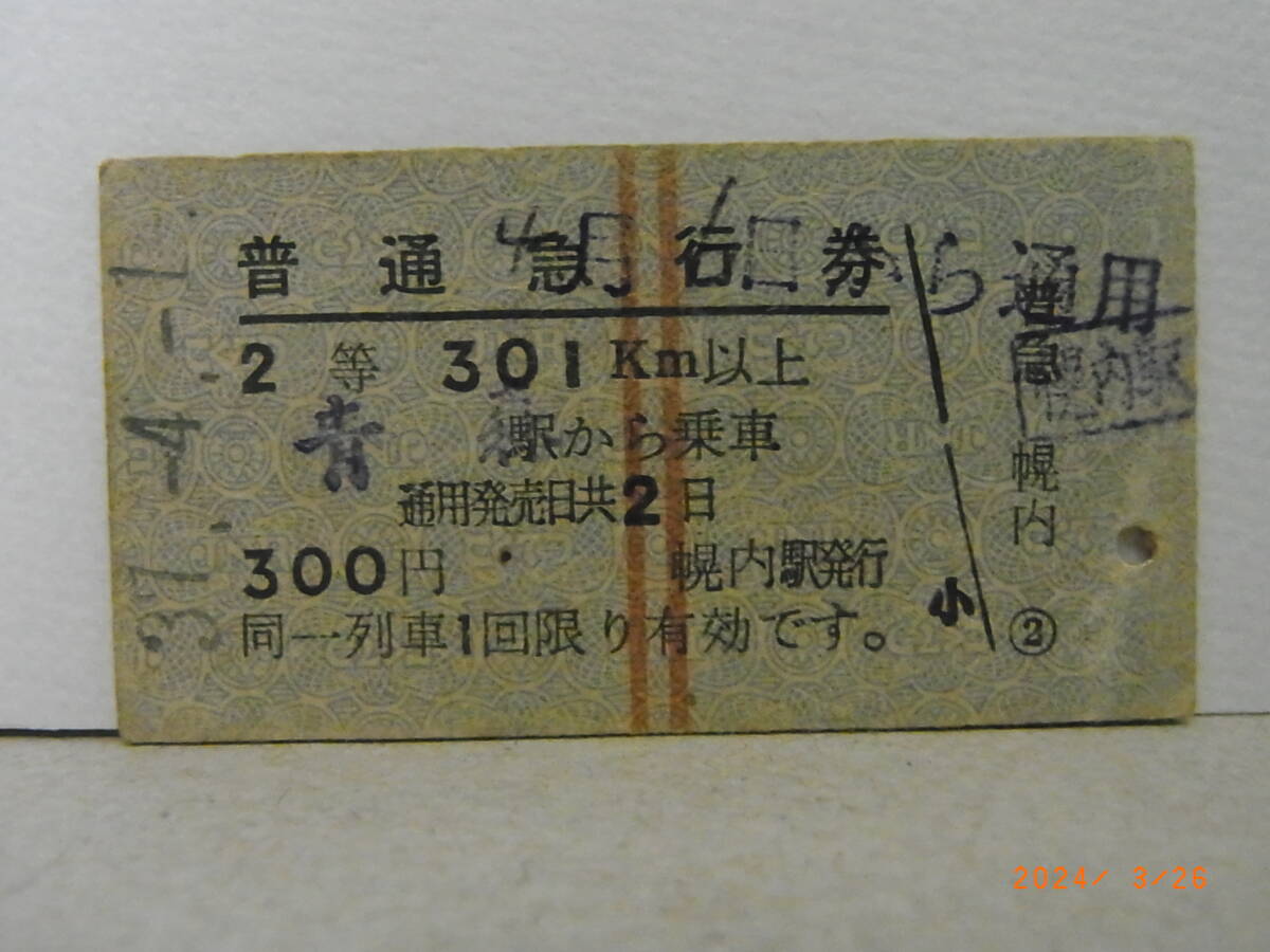 - 幌内線 A型切符・幌内駅発行【普通急行券(青森→301km・昭和37年) ★送料無料★