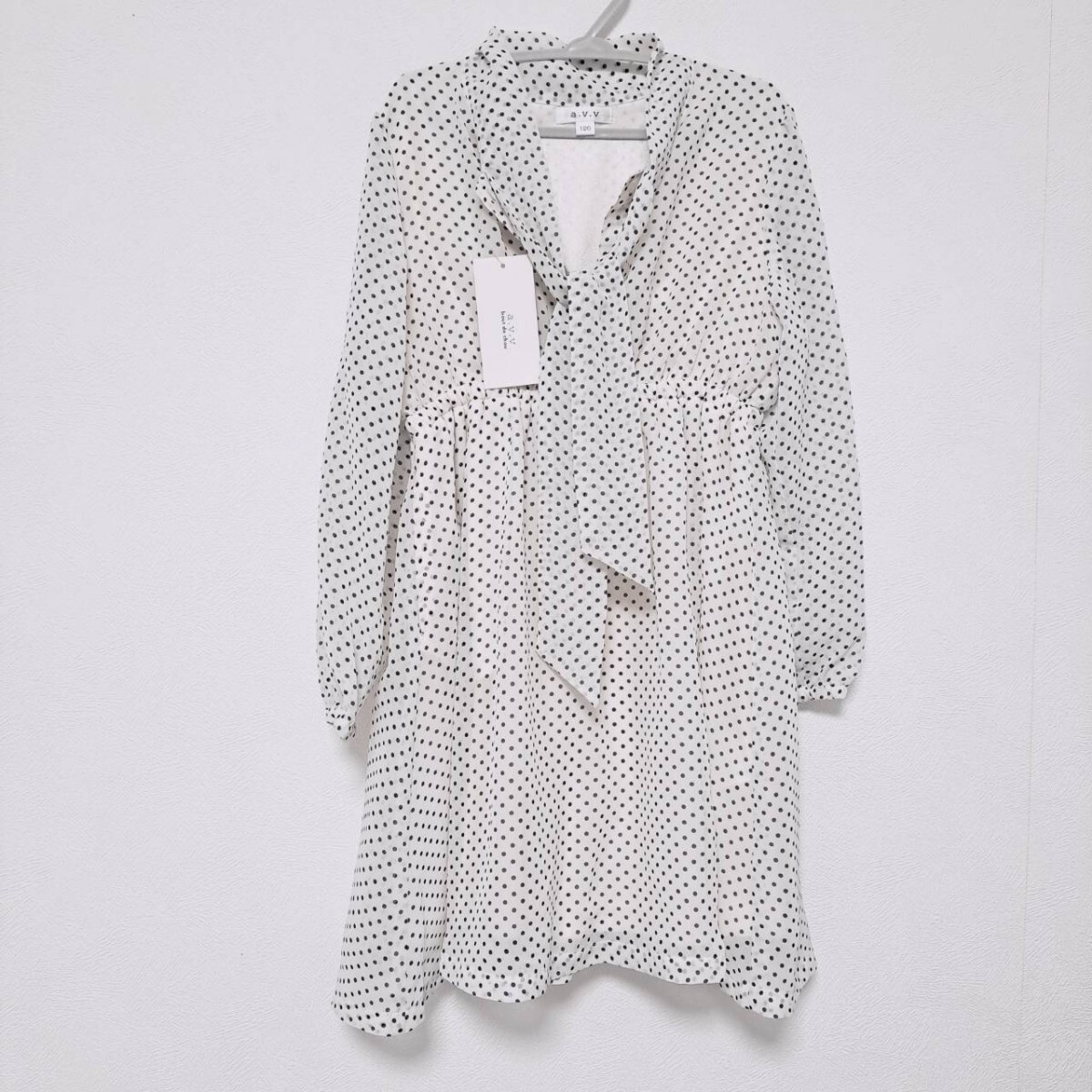 - 未使用タグ付き a.v.v シフォン ドットワンピース ホワイト 水玉 シアー ボウタイ サイズ120 キッズ 女の子 フォーマル 普段使 子供服 Y053