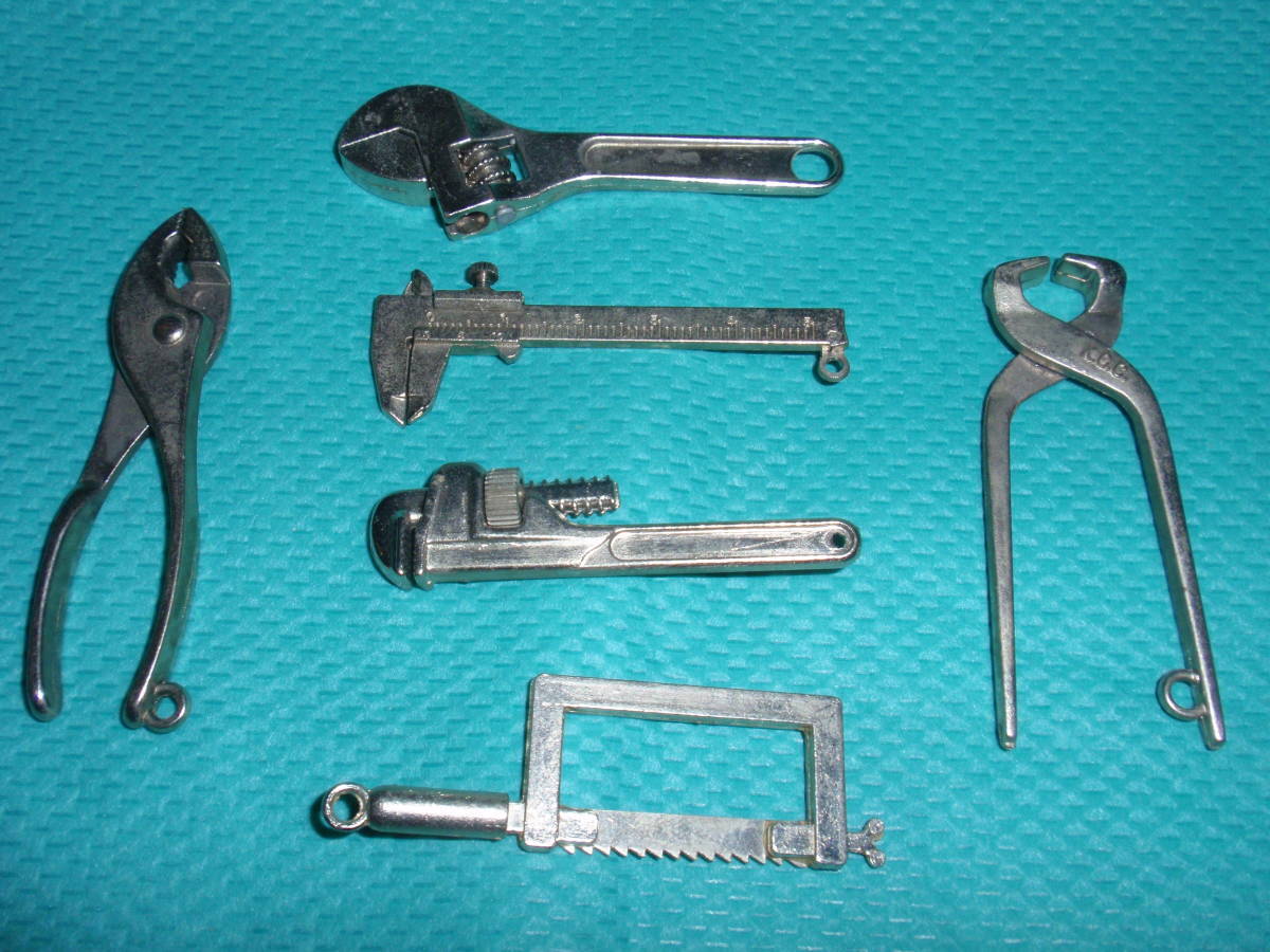 - 食玩★昭和レトロ★ミニチュア工具6点セット★ノギス★レンチ★ノコギリ★日本製★