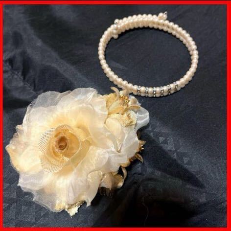 - 結婚式 パーティ ゴールド 華やか バラ コサージュ パール チョーカー ネックレス 七五三 成人式 入学式 卒業式 入園式 卒園式 幼稚園