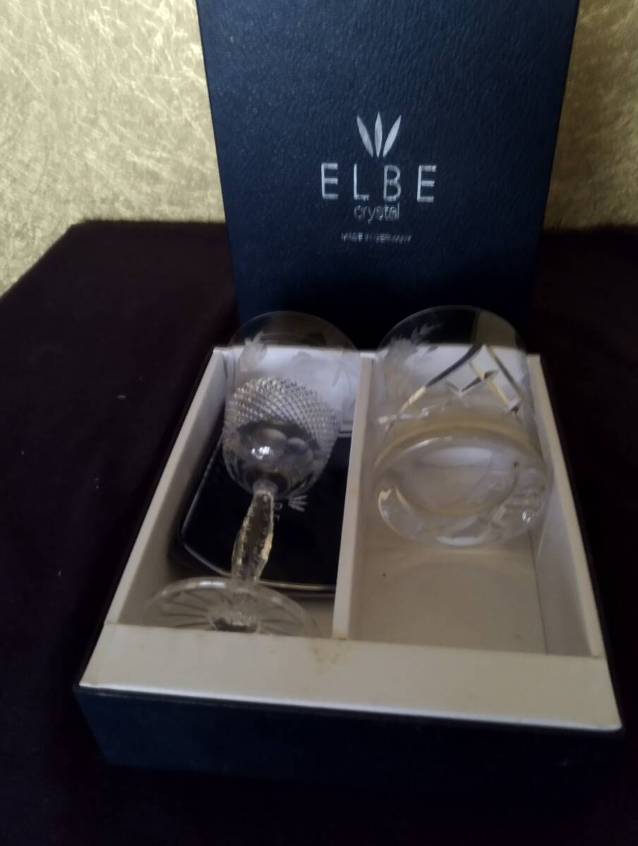 - ELBEcrystal エルベクリスタル ハンドカットグラス ELBE エルベ タンブラー×1ワイングラス×1 切子 未使用