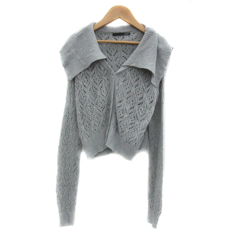- ヘザー Heather ニットカーディガン ショート丈 ビッグカラー 透かし編み F グレー /YS9 レディース