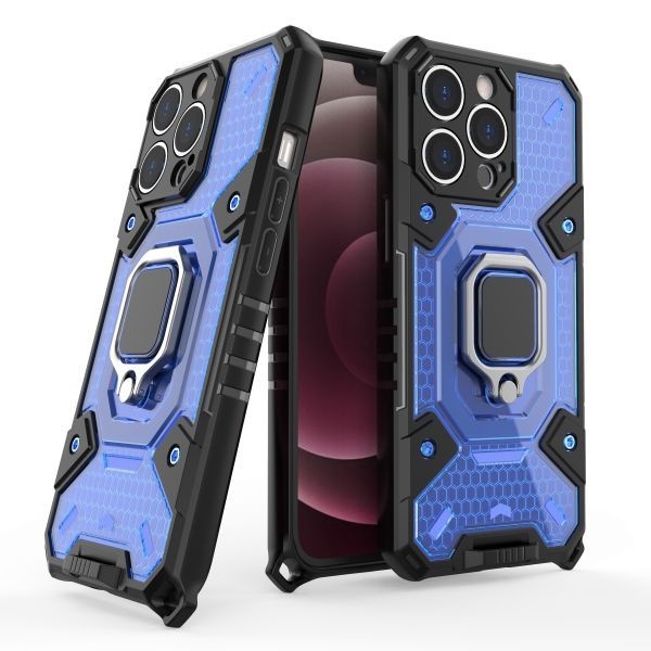 > A ブルー iPhone 13 Pro 指リング付き ケース 衝撃吸収 カバー アイフォーン Apple 本体 保護 超頑丈 保護 丈夫 米軍 耐衝撃 スタンド