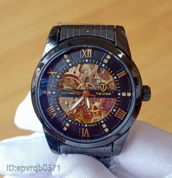 - 機械式自動巻 男性腕時計 新品未使用 メンズ ウォッチ スケルトン 夜光表示 3ATM生活防水 シンプル 紳士 通勤 /黒