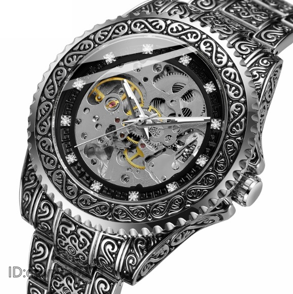 > 腕時計男性 アナログ 機械式自動巻 新品 メンズ ウォッチ 3針 スケルトンデザイン 彫り花柄 紳士用 通勤 /シルバー