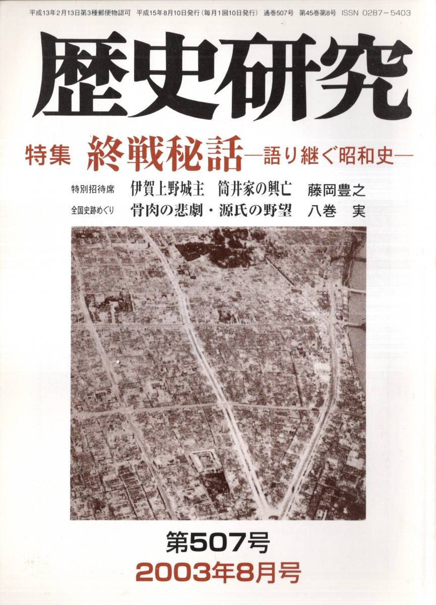 > ※歴史研究第507号特集終戦秘話語り継ぐ昭和史 関東軍総司令官、終戦時の決断=竹定政一・逃亡兵=五十嵐和夫等 伊賀上野城主筒井家の興亡
