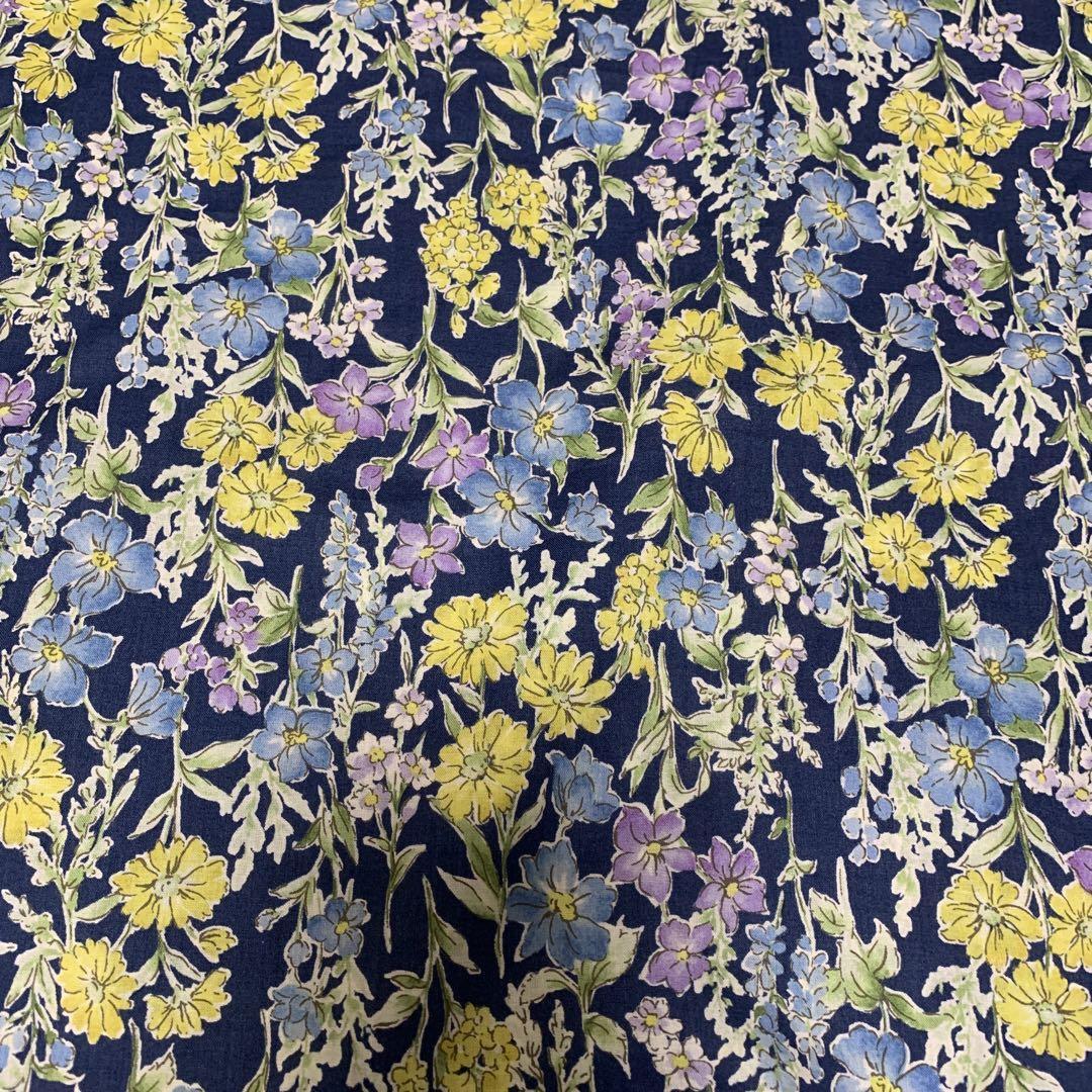 - 【生地】抗菌抗ウイルス 60ローン小花柄・ネイビー×黄色・青・110×3.0M