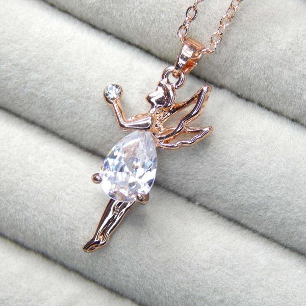 - 新品★送料無料 極大粒逸品 絢爛 小さな天使 CZダイヤモンド キュービックジルコニア ドロップ型 ネックレス ピンクゴールド レディース