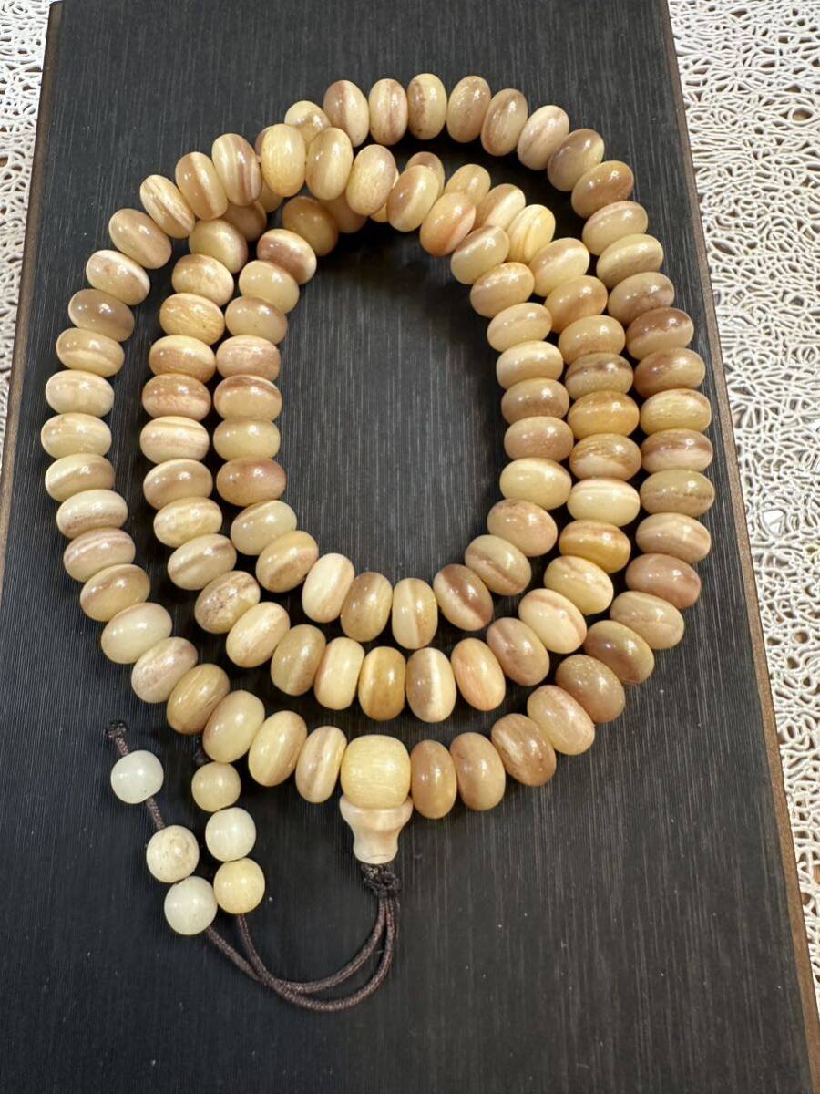 - T-408 文玩 天然ラクダ 骨 ネックレス 数珠 念珠 開運 お守り108粒
