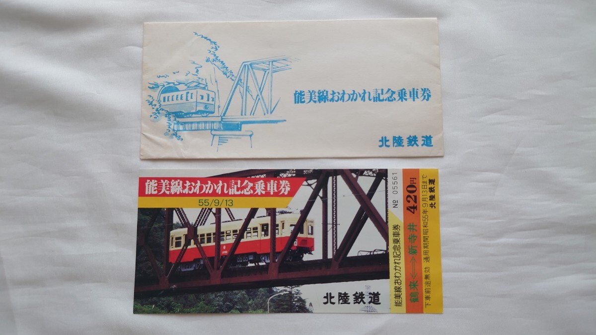 - ▲北陸鉄道▲能美線おわかれ記念乗車券▲昭和55年