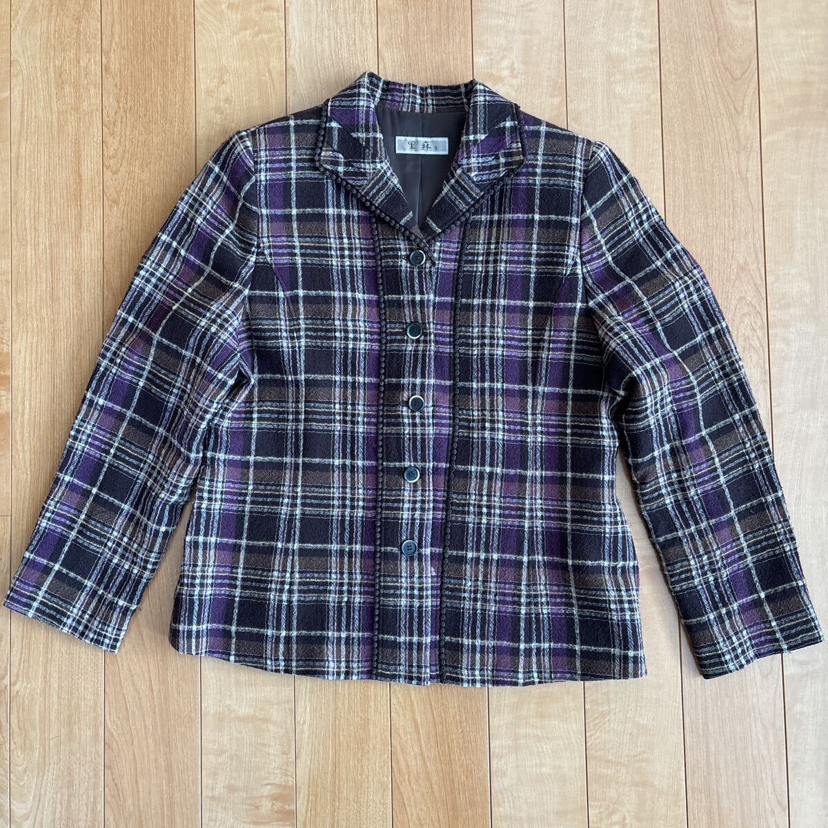- レディース 里麻 薄手 ジャケット チェック柄 9R パープル/ブラウン系 テーラードジャケット